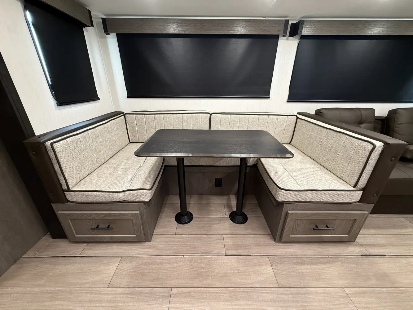Available with either a bunk room or an extra bedroom with queen bed, the Alpha Wolf 280QBS by Forest River is a great option for families needing to maximize space in a form factor under 35 ft. A U-shaped dinette in the kitchen allows for plenty of seating and doubles as an extra bed when not in use. The living room features a cozy fireplace, TV hookups and a sofa also converts into extra sleeping. Relax up front with a queen size bed, laundry chute and plenty of wardrobe space.